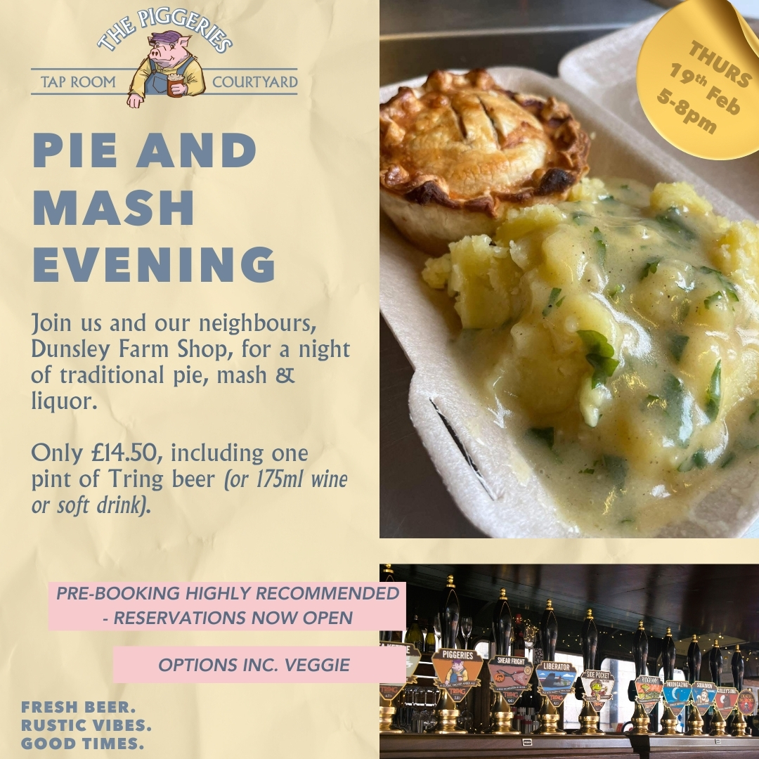 We’re throwing our next Pie, Mash and Liquor night at The Piggeries, and you’re invited.